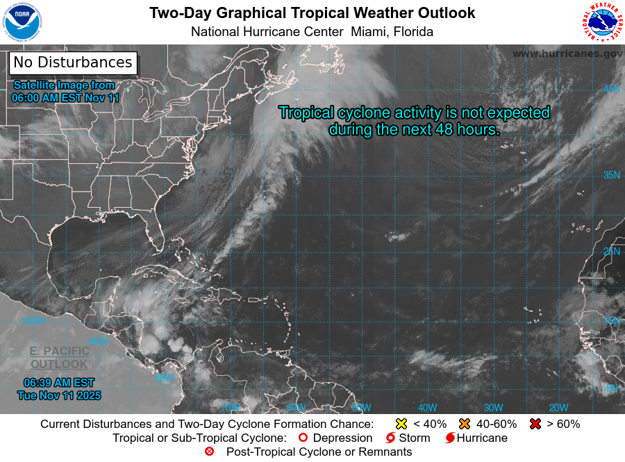 Tropical cyclone formation is not expected over the Tropical Atlantic, during the next seven days.